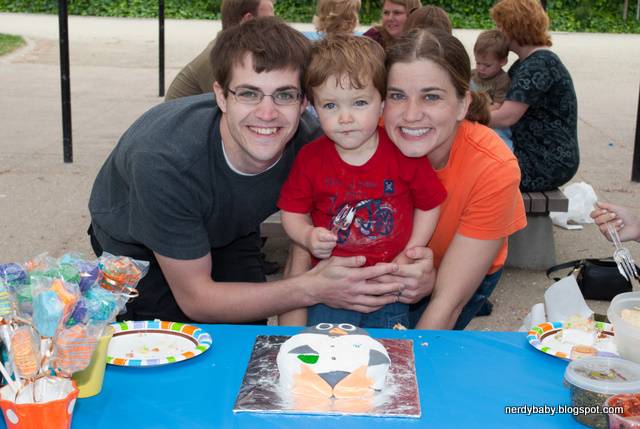 In the meantime, I'll show you our nerdy cake, a scientist penguin, fondly named "Dr. Penguin" by one of the kids. It was a collaborative effort between my husband and me.